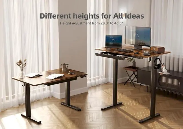 Adjustable Height: The electric desk enjoys the freedom to your preferred height, ranging from 28.3 inches to 46.5 inches. The sit to stand desk is equipped with three preset height adjustment controllers, allowing you to customize and save your height preferences, and easily switch between them