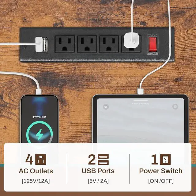 Charging PortOur charging station includes 4-Outlet & 2 USB Ports to provide power for up to 6 devices simultaneously. Also includes an on-off switch, thanks to the on-off switch, one-button power off to ensure safe electricity use, which strengthens security. Power outlet allows you to charge cell phones, tablets, notebook, etc.