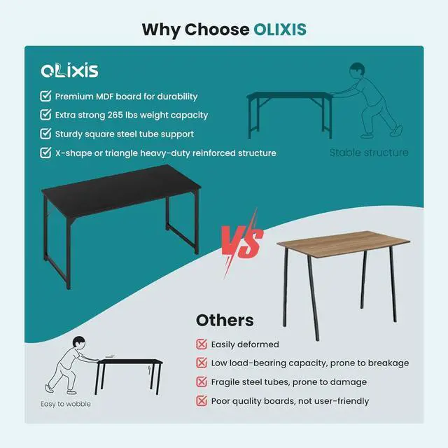 Our computer desk is designed in a modern but simple style. It can match all home decor styles and is not easy out of date. The spacious tabletop space makes it easy to contain your PC, laptop, coffee cup, mini plant, keyboard, etc. There are 3 sizes for you to choose from that meet all requirements for a bedroom, study room, or corner, working space
