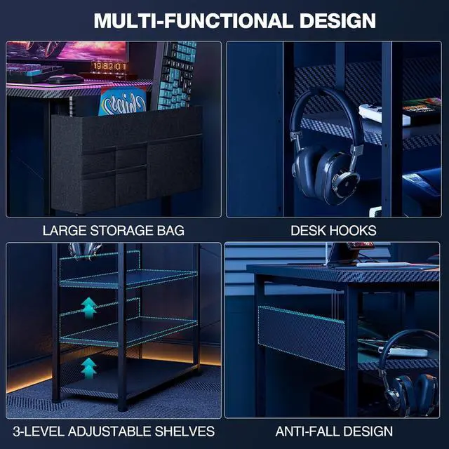Power Up Your Productivity- Built-in power strip with Two AC outlets, One USB ports, and one Type-C ports, keeps your devices charged and ready to go, eliminating messy cords.