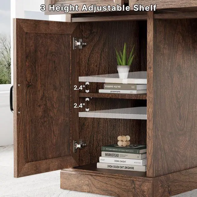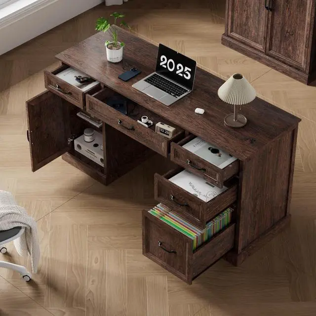 Durable Storage SolutionsFarmhouse Home Office Desk Equipped with 4 deep drawers and a built-in cabinet, this desk with file drawer offers ample storage for files, stationery, and personal items. The smooth-gliding drawers and sturdy construction ensure long-lasting functionality, keeping your workspace clutter-free.