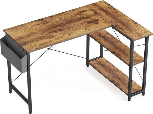 Optimized Work EnvironmentThis L-shaped computer desk with storage shelves offers ample space to organize all your office supplies effortlessly. The included storage bag helps eliminate clutter, keeping everything tidy and within easy reach.