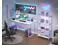 Modern Desk: Home office desk features a V design metal frame and a white wood grain surface, provides a sturdy and sleek appearance, embodying modern aesthetics. Stylish white desk offers a platform for monitors, laptops, books or other office supplies
