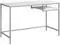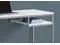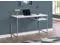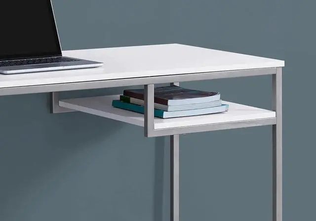 Spacious desk top in a chic white laminated finish One open suspended cubby for additional storage Sturdy coated silver metal legs Modern industrial style in a compact design suitable in any work space Finished on all sides