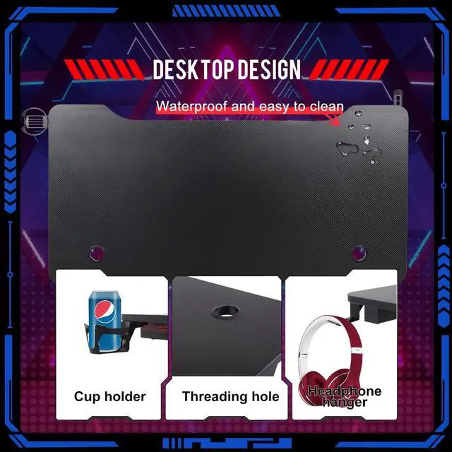 Game comfort: The 47 inch desktop is made of high-quality carbon fiber, the comfortable and smooth touch makes you enjoy the game. Cool black and reflective fiber stripes give you the ultimate cool feeling. giving you a variety of desktop options.