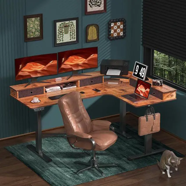 Freedom to Choose: The L-shaped standing desk adjusts from 29.7 to 48.8 inches, and 90-degree left-to-right seated position range. Your posture, your choice.