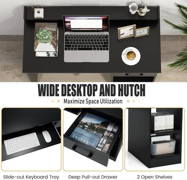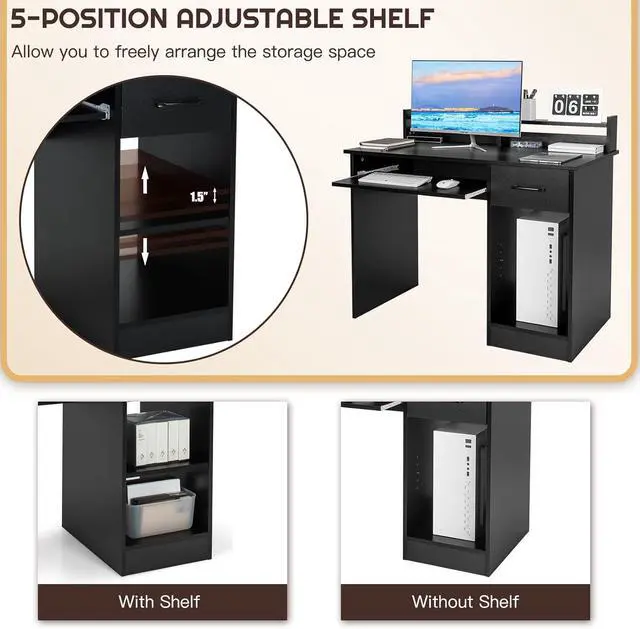 [Maximize Space Utilization]: With a raised hutch for organizing office essentials and small items. The home office desk has a pull-out drawer keeps things tucked away, while the 5-position adjustable shelf provides effortless customization. Also, the shelf can be easily removed to make room for a computer host.