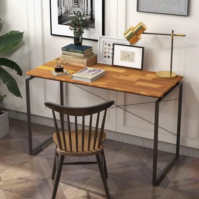 Fixed wooden rectangular table top Metal sled base: Black finish Powder coating Leg space dimension: 45" W x 22" D x 27" H Metal square tube frame size: T13 x 26 x 8mm, 6mm