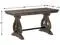Lyre inspired table trestle base lends elegant touch to the rustic appeal