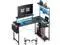 42 Inch Gaming Desk, L-Shaped Computer Desk with LED Lights, Monitor Stand, Power Outlets and Storage Drawer, Small Gaming Desk with Shelves and Hook, Computer Table, PC Desk, Corner Desk, Office Desk