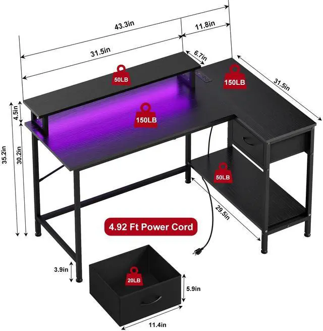 | Item Dimensions D x W x H | 19.7"D x 43"W x 30.1"H |