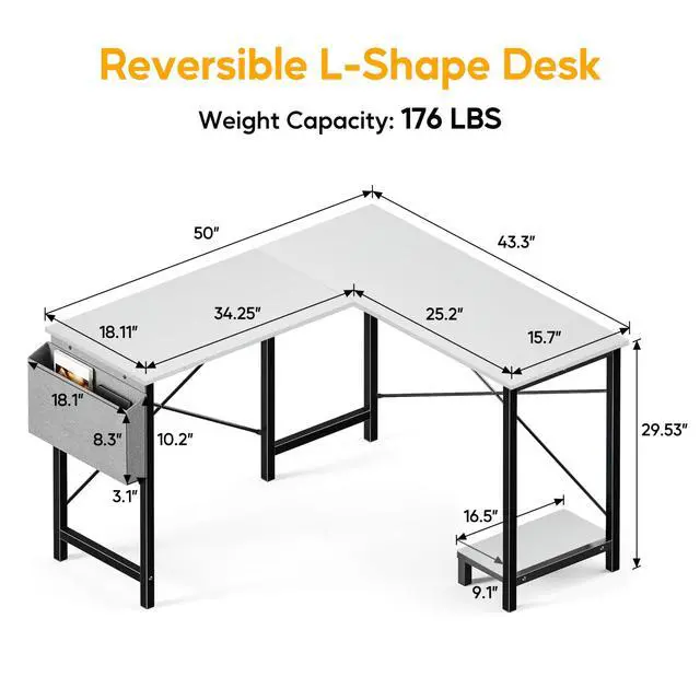 | Item Type Name | Corner Desks Work Table for Writing Study Student with Wood Tabletop Metal Frame CPU Stand Side Bag for Home Office Small Place |