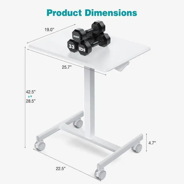 | Item Type Name | Mobile Portable Rolling Laptop PC Table on Wheels Adjustable Height Computer Workstation for Home Office, 19 Inch, Modern White |