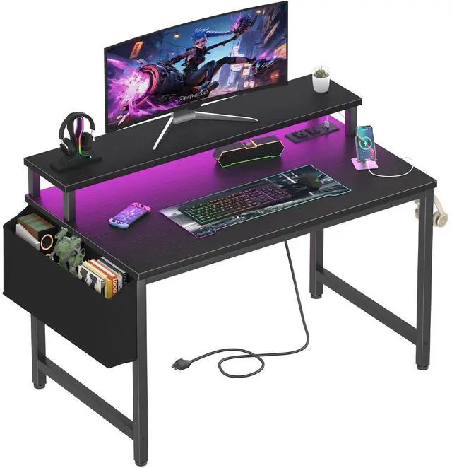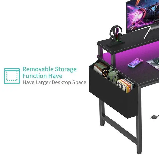 Gaming Desk With LED Lights: Equipped with a built-in RGB LED lights strips, the led gaming desk provides 7 adjustable colors, 4 dynamic modes, 16 static types, create different lights ambiance which provide different work or game scenarios