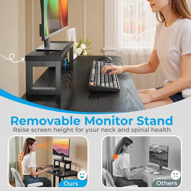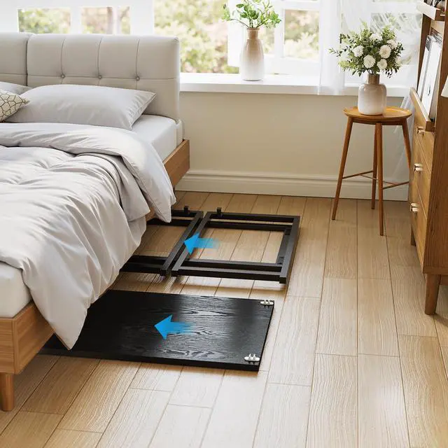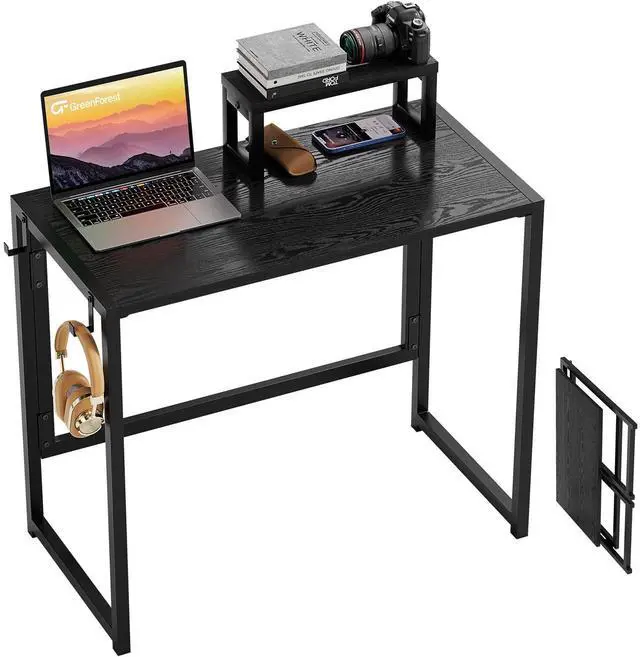This lightweight foldable desk is perfect for small spaces. It instantly transforms any area into a practical workspace or entertainment area. It features an effortless three-step fold and folds flat for ultra-compact storage (fits under bed/closet). Meanwhile the table comes with an ergonomic monitor stand that raises the screen for comfortable viewing. Spacious 31.5x 15.7 scratch-resistant tabletop for laptops! Excellent portability (weighs only 13.89 lbs!) -Can be carried like a briefcase to a balcony, campsite, dorm room or office space. The sturdy steel frame and durable top will hold most office supplies, and its non-slip feet ensure stability indoors or out, making it ideal for remote work, gaming, studying, crafting, or impromptu outdoor adventures. By choosing it, you'll have the freedom to work or play anywhere without sacrificing comfort or space.