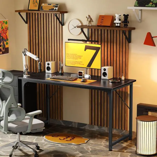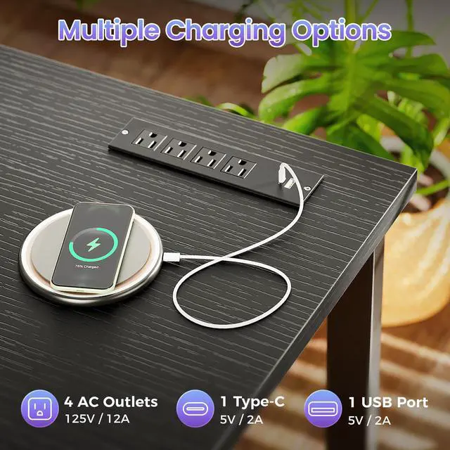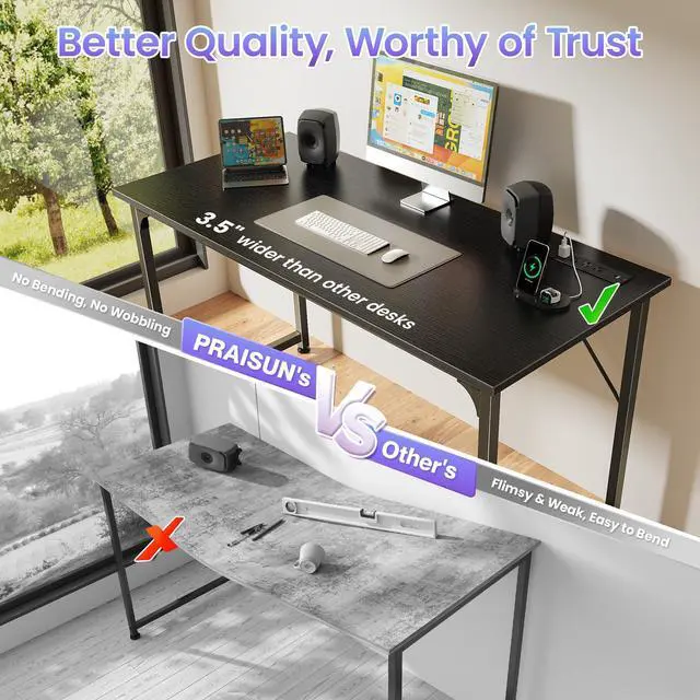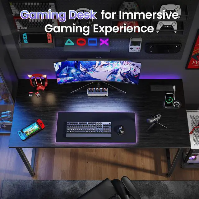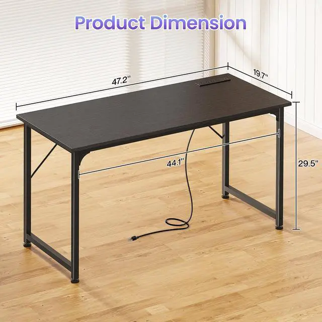 This versatile gamer desk is designed to support your daily work, study, and gaming needs with both functionality and comfort in mind. The built-in charging station features 4 AC outlets, 1 USB port, and 1 USB-C port, allowing you to power your laptop, monitor, lamp, or gaming gear directly from your desk while keeping your workspace neat and cable-free. The spacious 47 × 20 inch desktop provides plenty of room for multiple monitors, books, planners, and décor, making it easy to stay organized and work or play without feeling cramped.Designed to fit seamlessly into a home office, bedroom, study area, or gaming room, this desk adapts easily to different uses as a writing desk, computer desk, or gaming desk. Its reinforced structure, made from durable particleboard and thick steel tubes, ensures reliable stability, while added support struts under the tabletop enhance long-term strength. With clear instructions, labeled parts, and included tools, assembly is quick and simple, so you can set it up and start using it in no time.