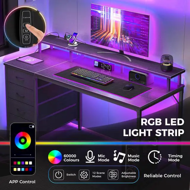 | Item Type Name | 4 Drawer Gaming Desk with with Power Outlets and LED Lights,Office Desk for Small Spaces with Monitor Shelf,Writing Desk for Home Office,Bedroom, Study 39 Inch Black |