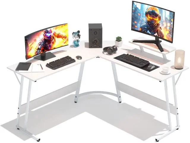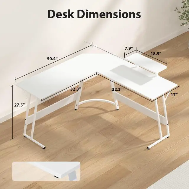 L-Shaped Desk, Corner Computer Gaming Desk with Large Desktop, 50 Inch Home Office Study Desk Writing with Monitor Stand, Small L Shaped Desk for Work and Study, White