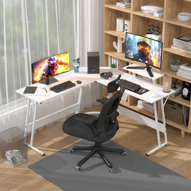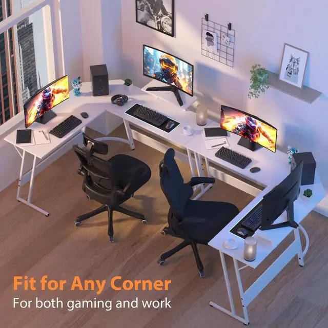 Spacious Gaming SurfaceDesigned specifically for gaming, this L-shaped gaming table consists of two large 50.4-inch wide gaming tables.In addition to the monitor, mouse, and keyboard, and keyboard, the esports table also includes a small tabletop where you can place your monitor, bringing your gaming room to life.
