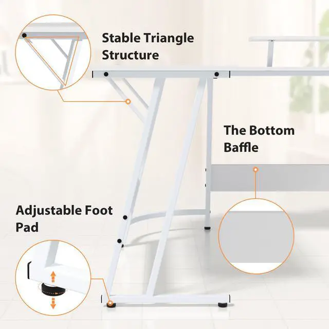 Adjustable table feet Thisstanding corner desk is equipped with adjustable table corners, which can meet different needs in different environments to adjust the table feet, so that the product is more stable and more adaptable to different environments.