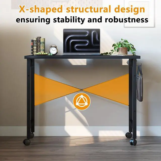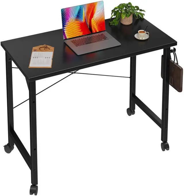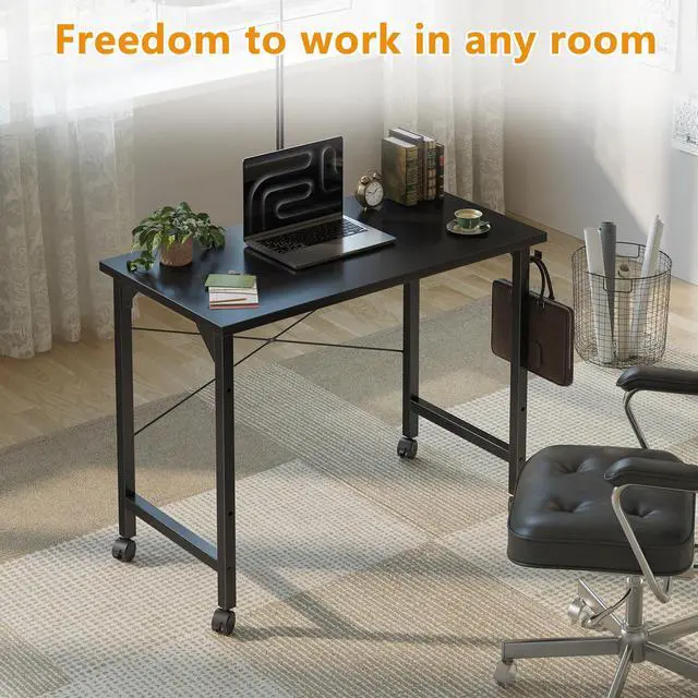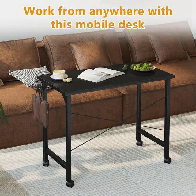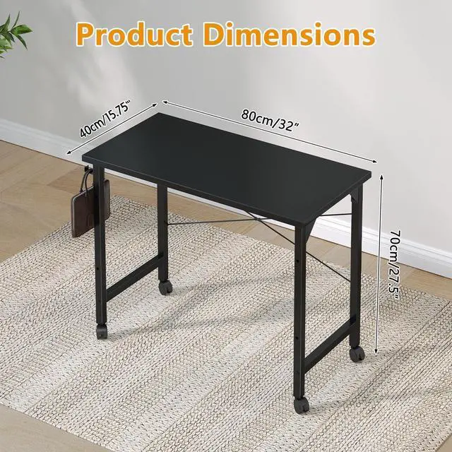 Rolling Computer 32 inch Desk with Wheels, Wroking Small Desk for Living Room, Modern Simple Style Table for Home Office, Study Writing Table, Caster, Black, 32 inch
