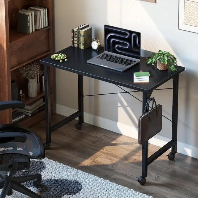 Compact Yet SpaciousSleek wood top paired with a sturdy steel frame blends seamlessly with any decor. This space-saving rolling desk maximizes your area while offering plenty of surface room for all your tasks.