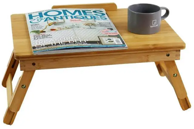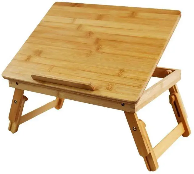 WKWKER Bamboo Lap Desk with Tilting Surface Legs Foldable Stand Table Bed tray (Natural Color)