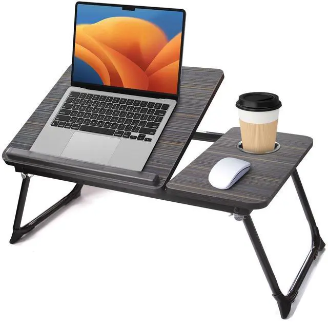 Lap Desk for Couch/Sofa/Floor, 5-Angle Adjustable Bed Desk with Foldable Legs &Cup Holder, Light Weight Bed Tray Table for Writing/Eating/Reading, Portable Laptop Stand for Adults, Kids