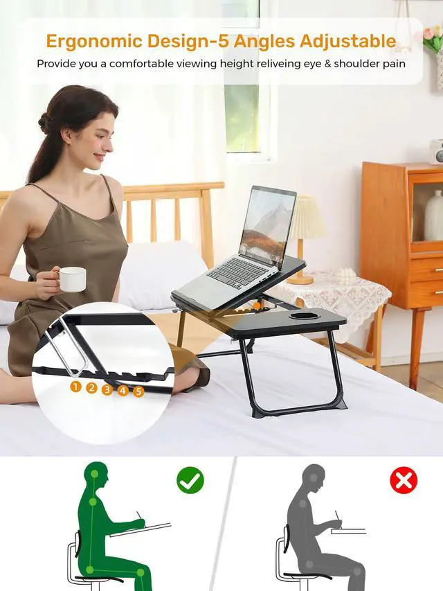 [Multi-Use] :This bed tray table could be used as laptop table for couch and bed, laptop stand for bed desk,snacks tray, kids lap homework/bed table, reading and writing stand, and even portable mini picnic stand