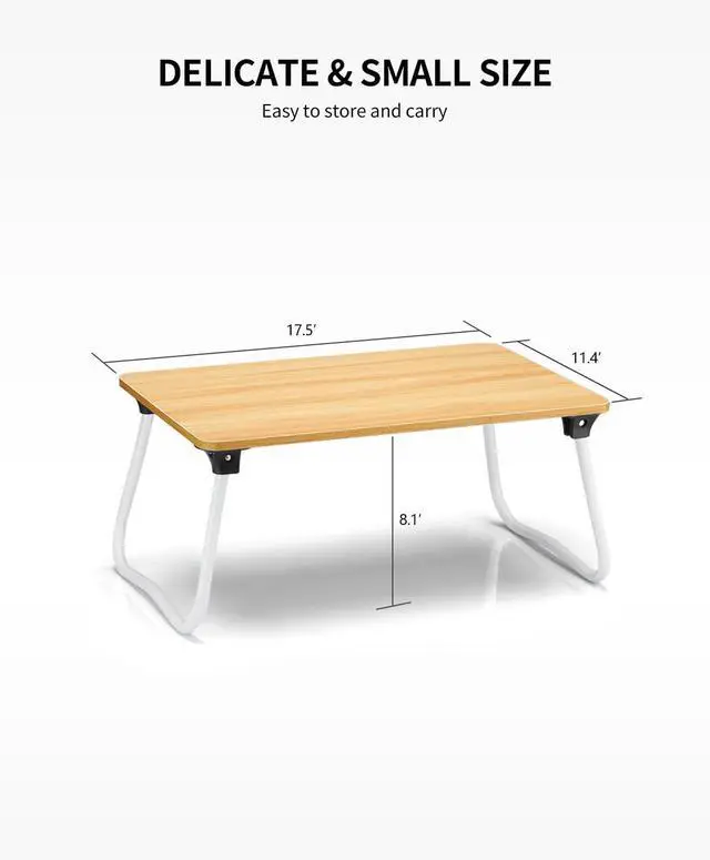 Easy Storage. This bed table tray features foldable legs for simple operation. The legs fold under the tray, making it slim enough to slide into a narrow cupboard or closet, stand upright on your counter, or fit under the bed. It is very lightweight and easy to carry, allowing you to work comfortably on the bed, sofa, or floor.