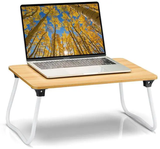 Foldable Lap Desk Laptop Stand Bed Desk Table Tray, Breakfast Serving Tray, Portable & Lightweight Mini Table, Lap Tablet Desk for Sofa Couch Floor - Wood