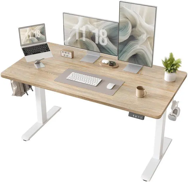 Electric Height Adjustable Standing Desk 47.2 × 23.6 inch, Sit Stand Desk with Splice Board, Memory Controller, White Frame & Maple Top Computer Workstation for Home Office