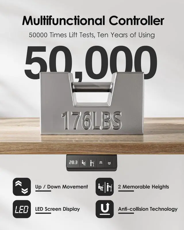 Outstanding Stability - The electric standing desk boasts powerful lift system to ensure a smooth, steady, quieter operation. The powerful motor is cable of lifting up to 176 lbs, with smooth speed at 25mm/s, and noise less than 45dB.