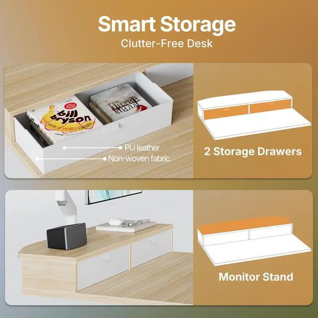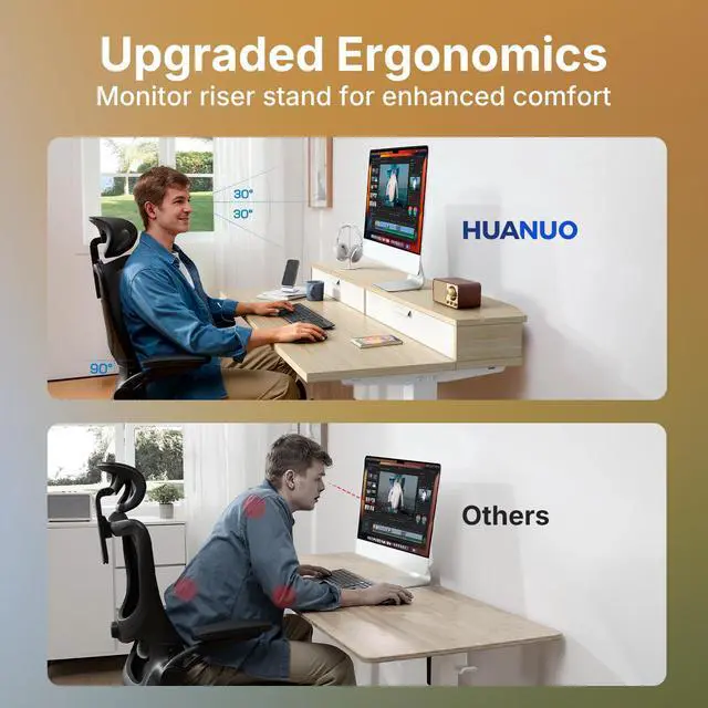 Compatible with C-Clamp Mounting: This standing desk with drawer has a 2.6 extended rear edge for easy C-clamp monitor mounting. You can also place your monitors directly on the riser, elevating your screens closer to eye level for ergonomic comfort while working.