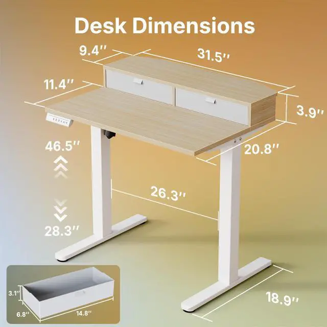 Effortless Organization: This height adjustable desk features two drawers to keep your items out of sight and a spacious surface to create your personalized workstation. It keeps your workspace neat and efficient while offering a modern, sleek look.