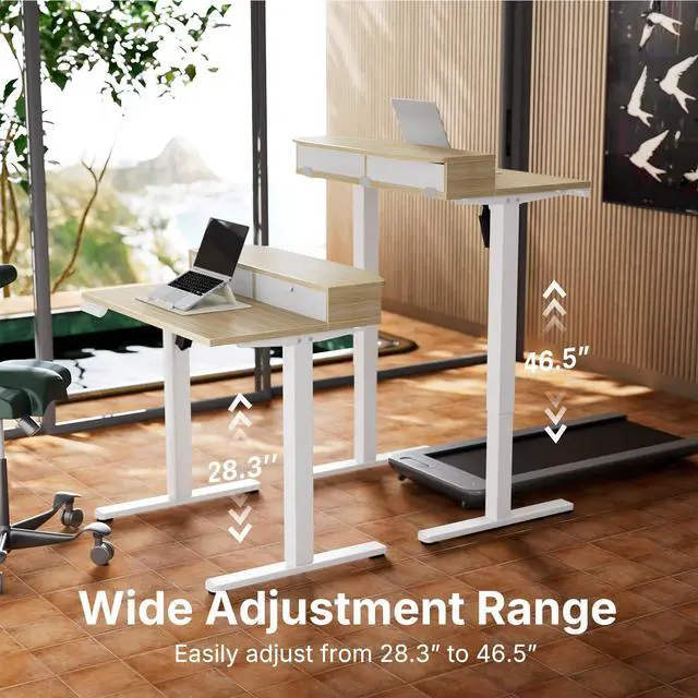 Wide Height Adjustment Range: Easily switch between sitting and standing with a height range of 28.3 to 46.5, accommodating various work preferences and postures. Whether you're seated at a desk or standing for tasks, this desk adapts effortlessly.