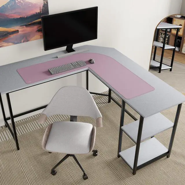 A: Hello! Our L-shaped desk mat is specifically designed for corner desks, providing perfect protection for the angled surface while offering ample space for multiple monitors or gaming equipment. We recommend laying it flat for several hours after receiving it to allow it to naturally conform to the surface for optimal results.