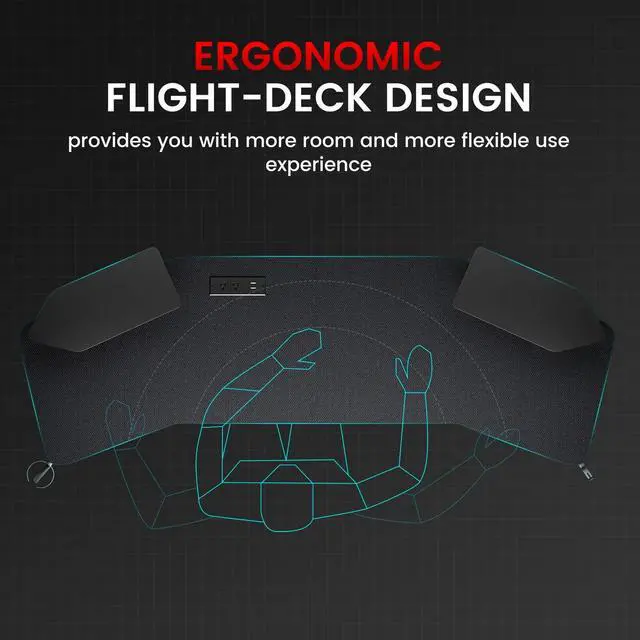 - Aircraft Wing-Shaped Desktop: The GTRACING Gaming Desk features an innovative aircraft wing-shaped desktop design, providing a sleek, aerodynamic look while maximizing desk space. The unique shape ensures ample room for all your gaming gear, multiple monitors, and accessories, making it the perfect setup for gamers and streamers. This thoughtfully designed desk combines aesthetics and practicality to enhance your gaming experience.