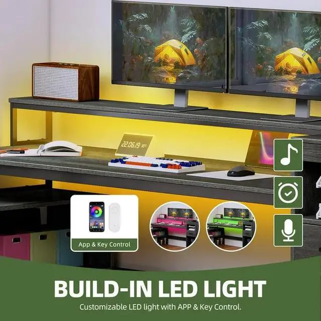 - Smart 2-Tier Workspace: Maximize your productivity with a dual-level tabletop, keep keyboards and essentials on the lower tier while the upper tier comfortably holds up to 2 monitors. Greatly organized, stylish, and ergonomic.