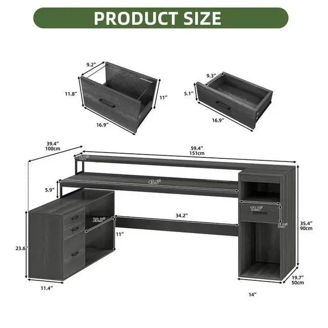 - Spacious Storage: Stay organized with this farmhouse L-shaped desk, featuring 3 drawers, 3 open cubbies, a large CPU compartment, printer stand, and a file cabinet with adjustable bars for letter, A4, or legal documents. Everything has its place.