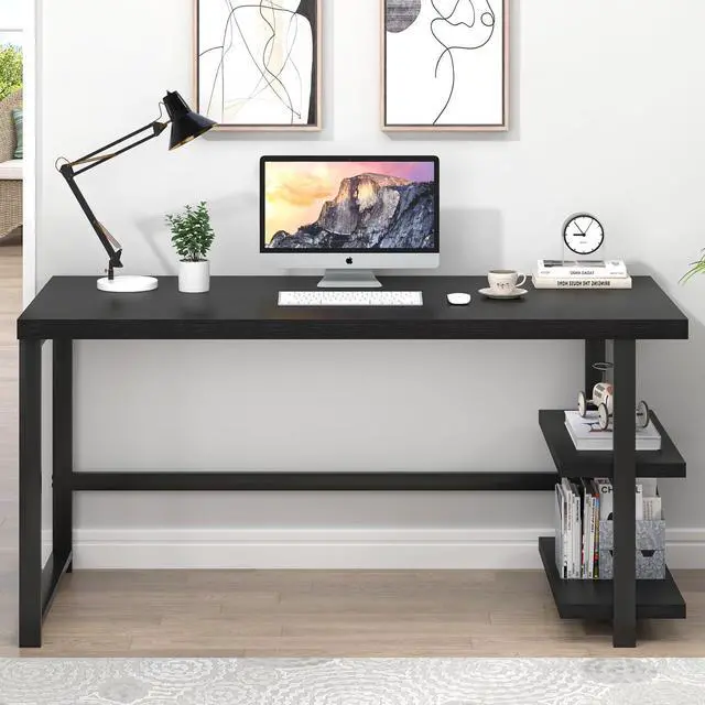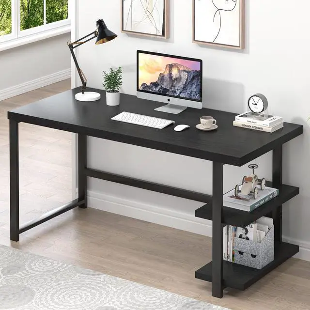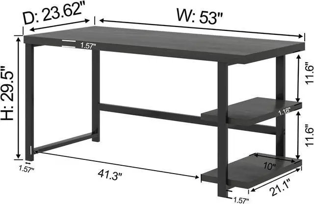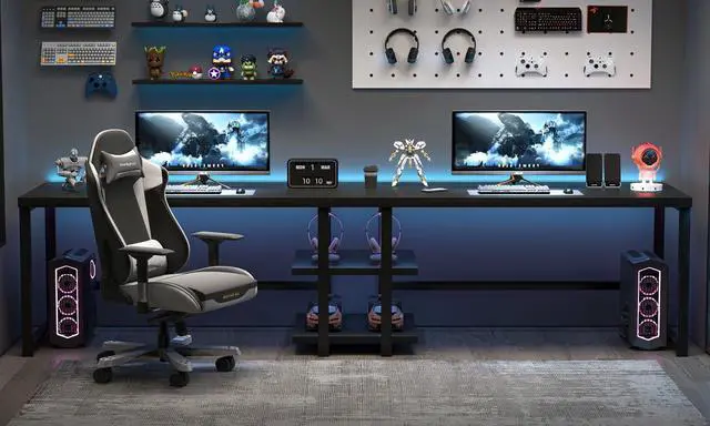 Ample Storage Space: This computer desk offers spacious desktop and practical storage solutions with 2 shelves for organizing daily essentials like books, office supplies or gaming equipment, easy to start and maintain productivity on your tasks