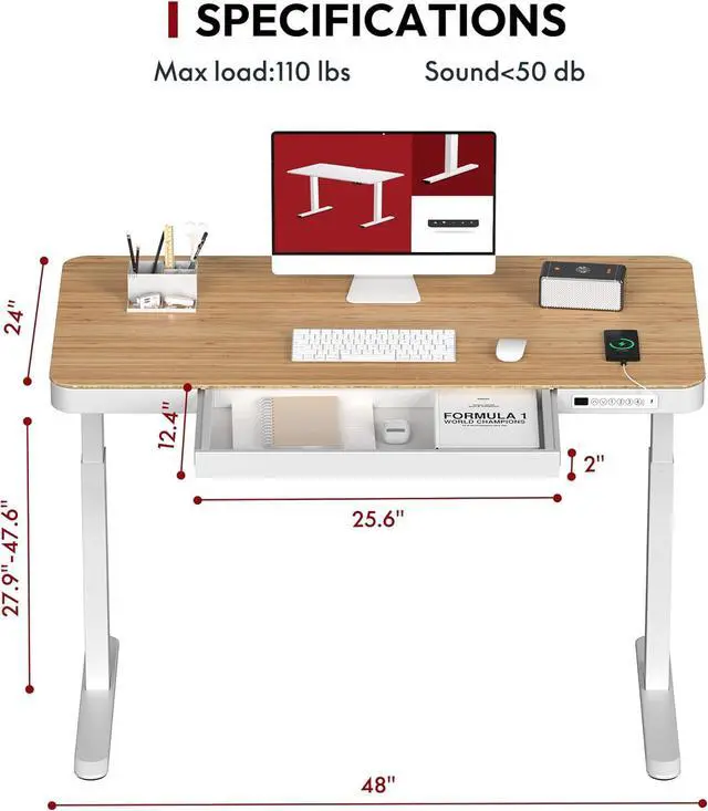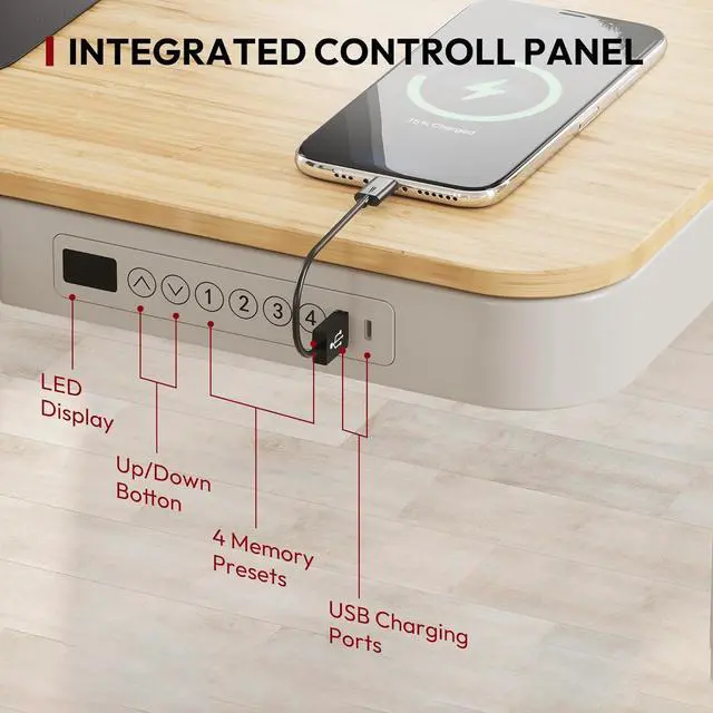 Embedded Multiple Functions: Easily save multiple with four programmable height presets, a child lock button helps prevent accidental touch. Charge up to three devices with integrated
