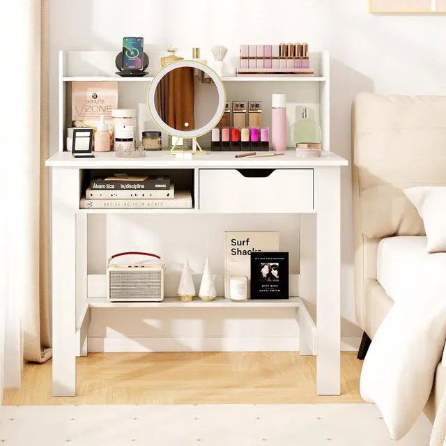 Versatile Use: Measuring 37.5 x 22 x 43, this modern desk fits perfectly in bedrooms, study rooms, and offices. Whether youre working, studying, or doing makeup, its simple lines and clean finish blend seamlessly with any style.