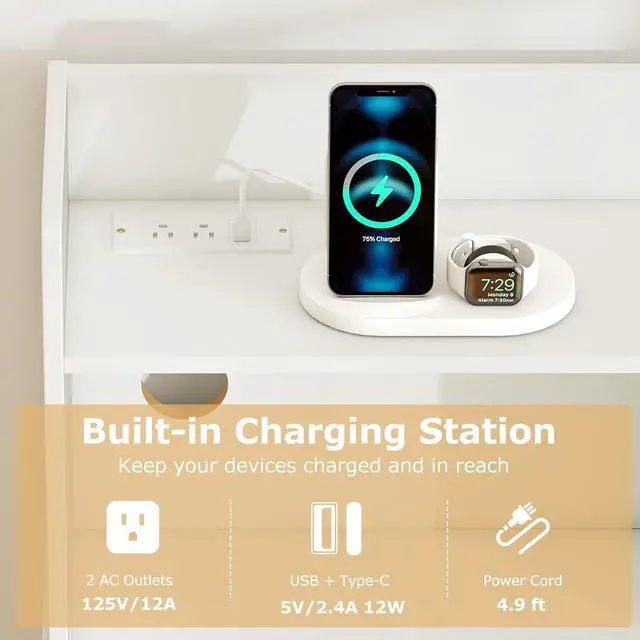 Built-in Charging Station: Tired of searching for outlets? With 2 AC outlets, a USB port, and a Type-C port, this computer desk keeps your devices charged and ready to go. No more messy cords or inconvenient power strips!