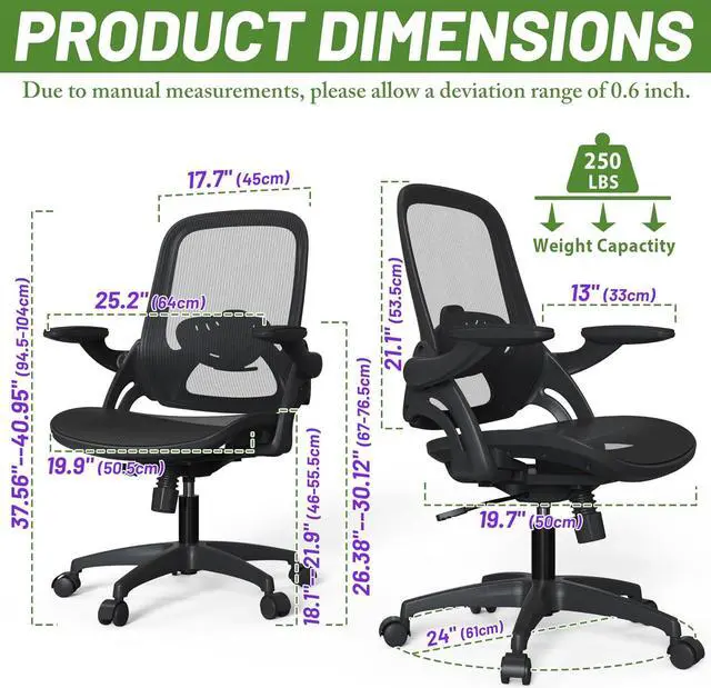 Durable Desk Chair: Our home office chair are made of high density mesh, comfortable seats, sturdy gas cylinders and seat bases, it can bear up to 250 pounds
