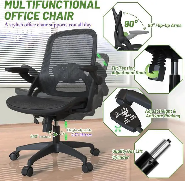 Adjustable Mesh Office Chair: Our office chair has 360° rotation, 4.7 inch height adjustment, 30 degree swing function and adjustable lumbar support to ensure good support and more comfort