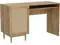 Design: Modern farmhouse boho study desk featuring hidden storage with natural rattan door, antique gold hardware handle, and an open niche for ample storage