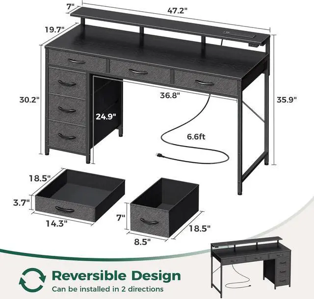 Computer Desk with 6 Drawers6 foldable and easy-to-pull fabric drawers. These drawers offer divided and private storage space, perfect for keeping your files, stationery, and other office supplies neatly organized. The generous storage capacity allows you to keep your workspace tidy and efficient