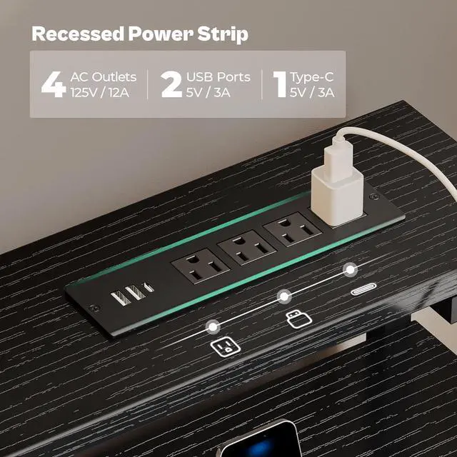 Office Desk with Power OutletsOur work desk is equipped with 4 standard plug outlets, 2 USB ports, and 1 Type-C port. Whether you need to charge your phone, power your gaming gear, or connect other office devices, this gaming table desk provides all the outlets you need, neatly organized to avoid cluttered wires