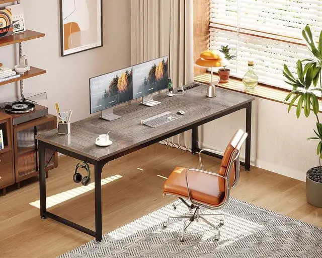 Large Desk Panel Dimension 70.9 " (L) x 23.6 " (W) x 29.0 " (H). This large computer desk offers large space for monitors, printers as an excutive desk or gaming desk, which is a good choice for home office work including writing, gaming, study. Besides, the long desk with ample desktop can work as your conference table or large workstation.